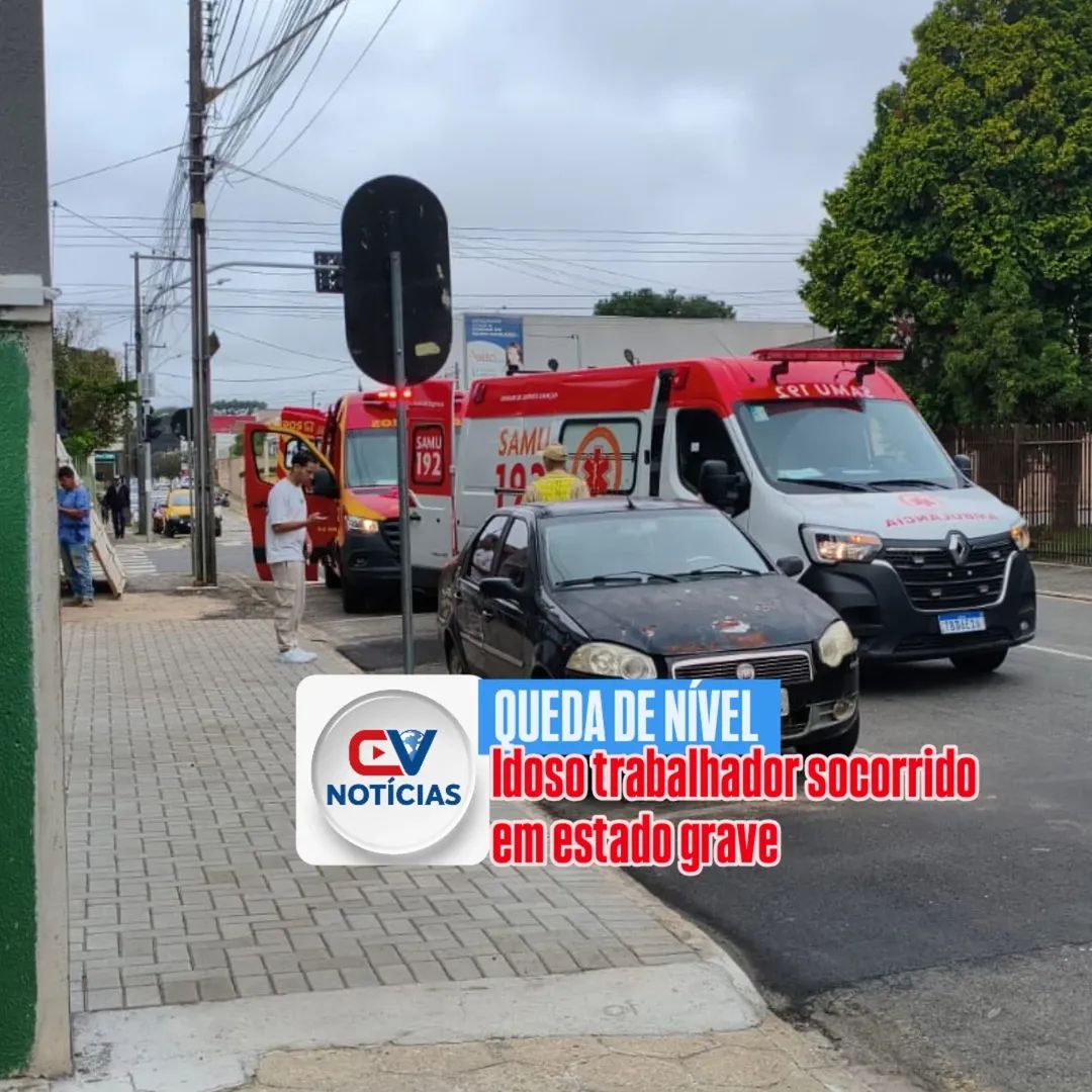 Um trabalhador de 79 anos ficou gravemente ferido após sofrer uma queda de altura em um prédio em construção no Centro de Campo Largo, no início da manhã desta terça-feira (10).