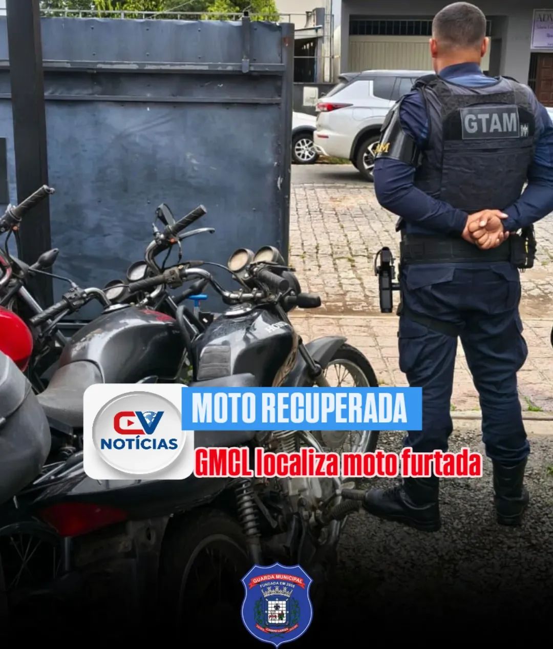 “Motocicleta estava sem placa, após checagem da GMCL, constatou-se o alerta de furto alguns dias atrás”