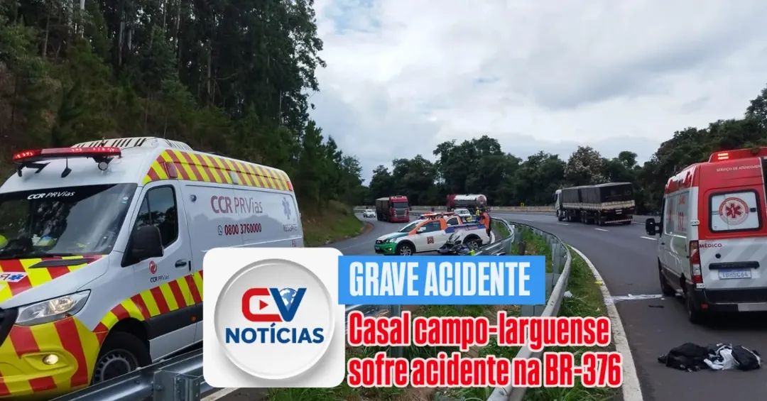 Um casal de Campo Largo ficou gravemente ferido após um acidente do tipo queda de ocupantes de motocicleta registrado no km 432,5 da BR-376, no município de Tibagi.