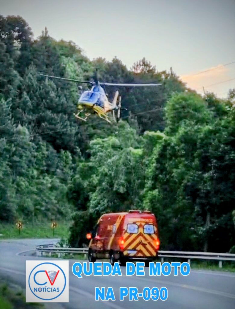 Um motociclista de 37 anos ficou gravemente ferido após um acidente ocorrido no final da tarde desta quarta-feira (03/12), na PR-090, também conhecida como Estrada do Cerne, na altura do km 27, região de Bateias. Ele sofreu fratura no terço médio do fêmur direito e precisou ser resgatado por um helicóptero da Polícia Rodoviária Federal (PRF).